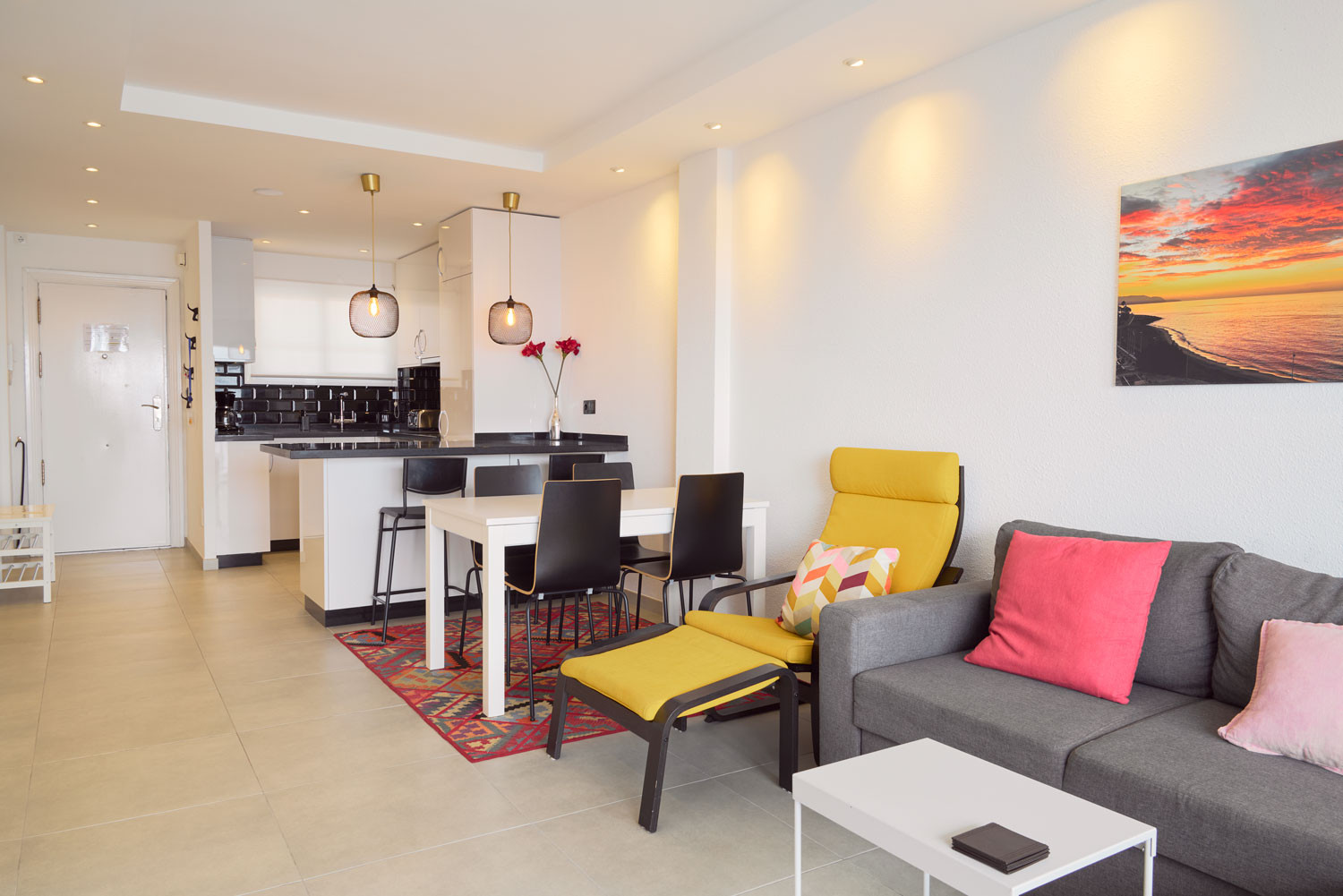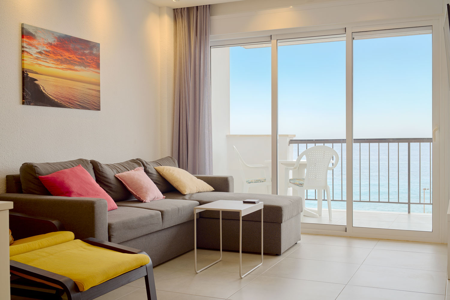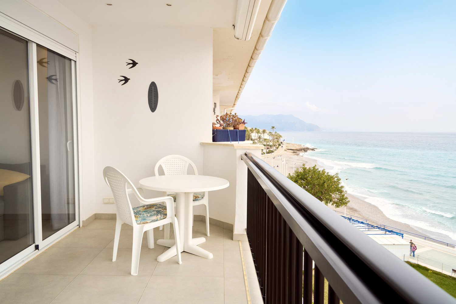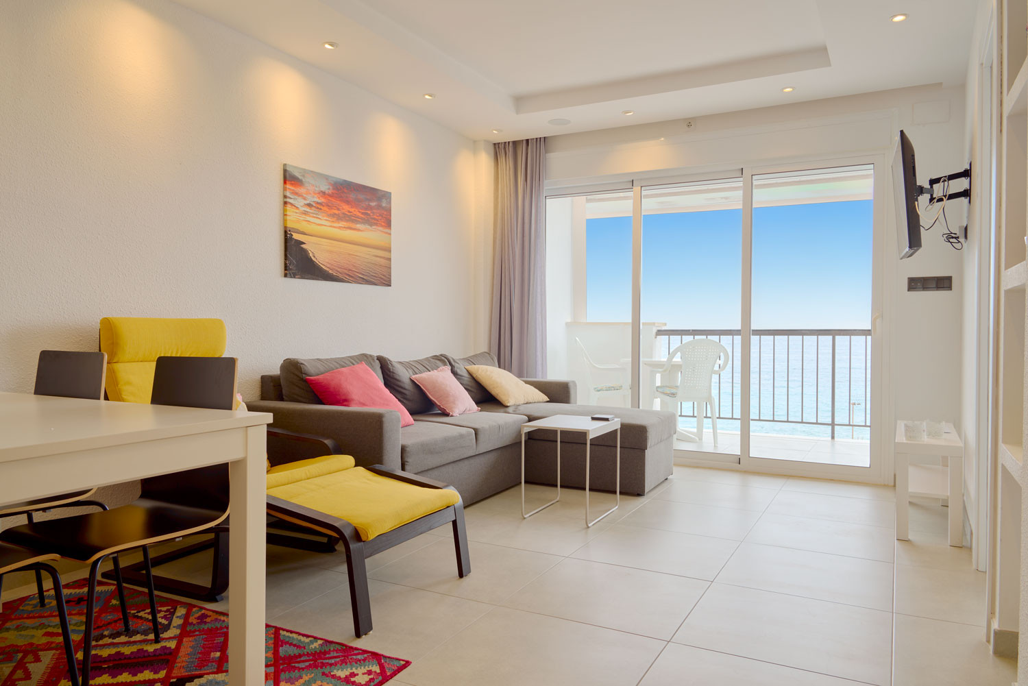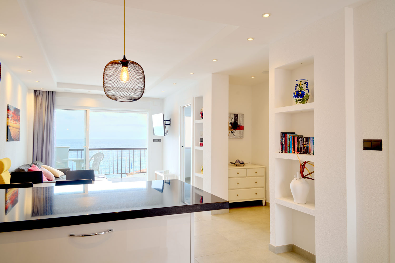 From the moment you enter the accommodation, the sea takes centre stage. The feeling of being suspended above the Mediterranean is immediate as you cross the threshold; the layout of the living room is designed so that the blue of the horizon seems like an extension of the floor itself. It is an exceptionally bright space, ideal for those seeking total visual disconnection. What's more, its location is unbeatable for forgetting about the car, as it is less than 100 metres from La Torrecilla Beach, just a minute's walk away.Functional layout and exterior-oriented design