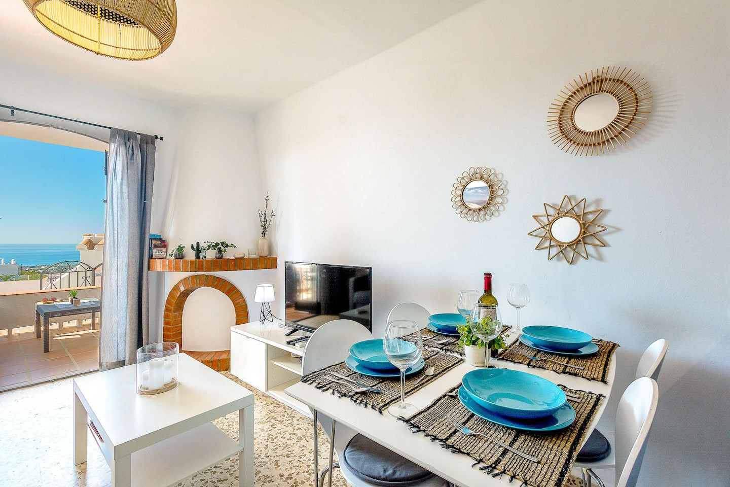 we love every thing a bout this place . this being our sixth trip here . just so beautiful. the apartment wonderful . sea views of the terrace. very clean . and all very well run . access to the swimming pool which is just a short walk away . with a few restaurants. a small shop which is open quite late . and all very picturesque. and all this is only a short drive to the beach .or in to town . there is all so a bus service . which runs a regular service . and only about 30 mins from malaga air port .