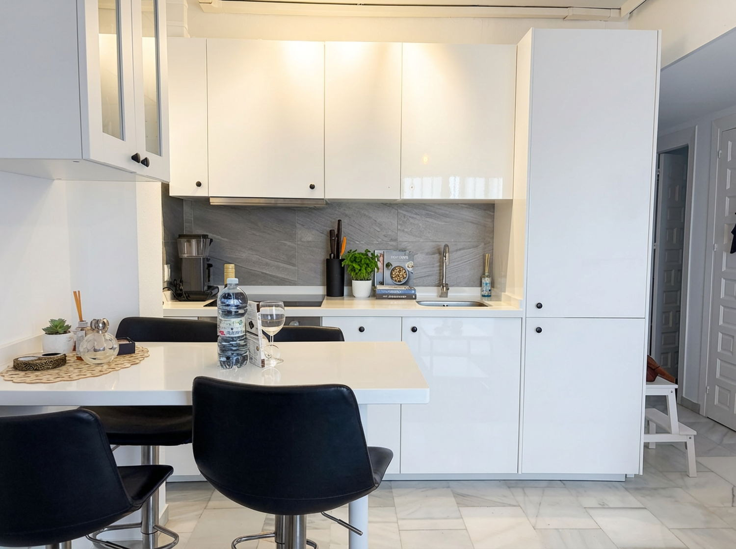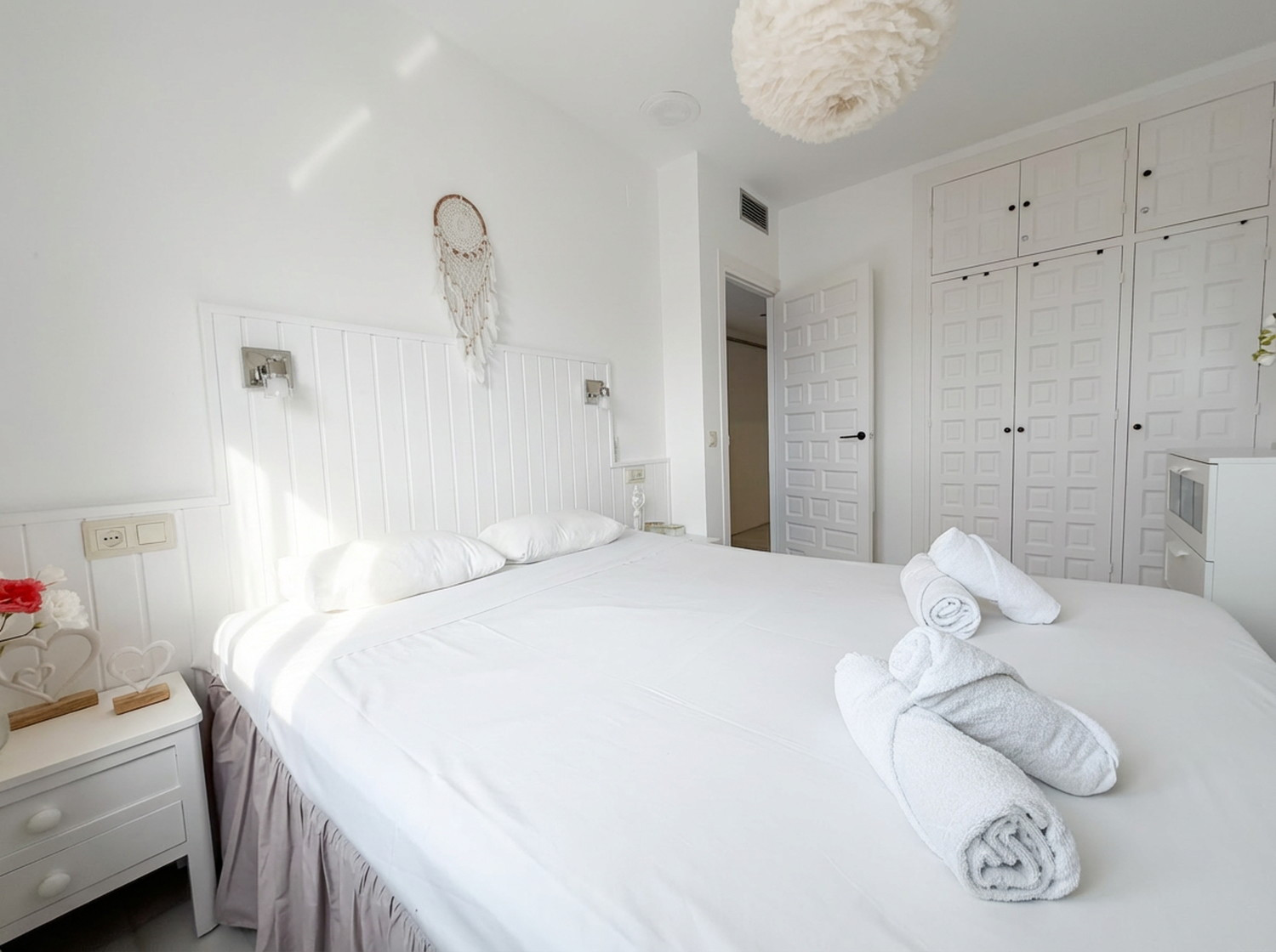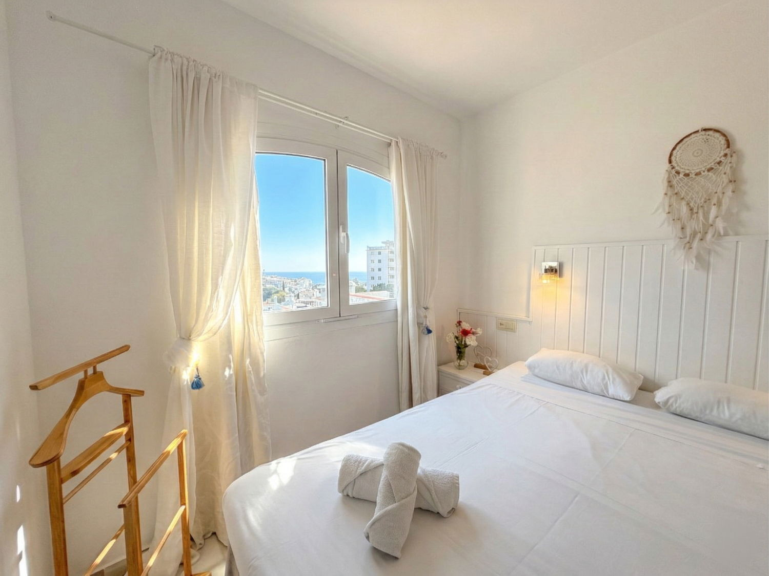 Casa Monica is a space designed for relaxation, where the Mediterranean blue becomes the main backdrop of your stay. Located in the prestigious Verano Azul Urbanization, this apartment offers the privacy and charm that couples seek in Nerja. It is the ideal place to enjoy the calm of a consolidated residential environment, with the privilege of contemplating the horizon from your own private terrace while having breakfast with the sea breeze.Bright interior and bedroom facing the Mediterranean