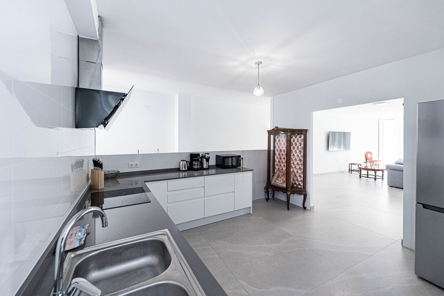Indoor and outdoor living: The heart of the house is an exceptionally spacious and bright living room, connected directly to the outdoor terrace facing the main street. This fluidity allows the breeze from the centre to cool the entire room. The kitchen has high-end appliances and is fully equipped with everything you need for your stay, including a dishwasher, oven and microwave. It is a functional and modern space, ideal for preparing everything from a quick coffee before heading to the beach to a full family dinner.