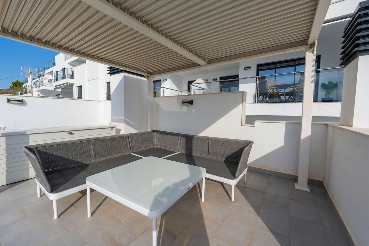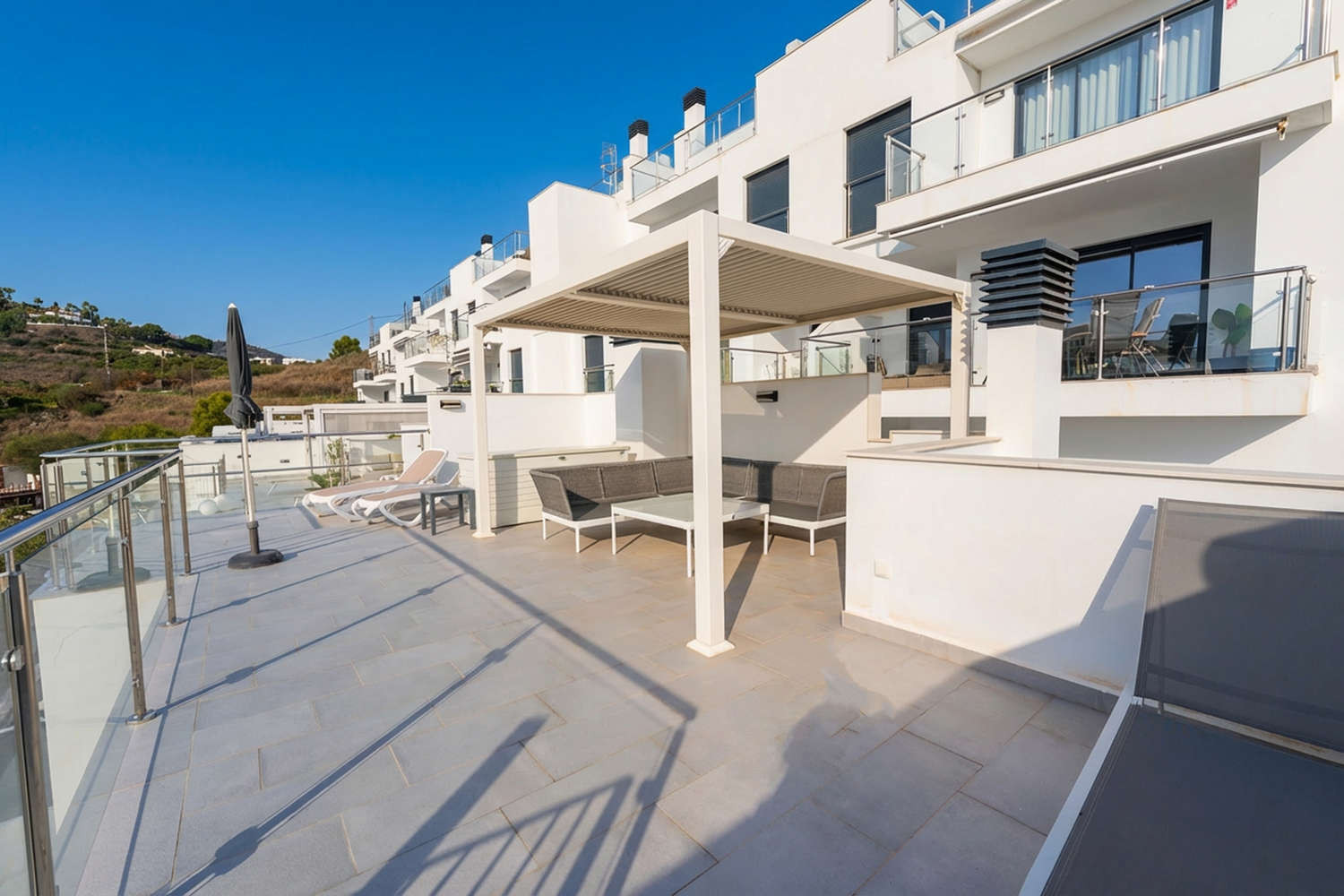 Moderne und hochwertige Penthousewohnung mit 2 wunderschönen Terrassen, toller Blick, gepflegte Anlage mit schönem Pool, Auto ist erforderlich, 2 wunderschöne Buchten fusslÀufig erreichbar, Oktober perfekte Reisezeit mit wunderbaren Strandwetter, gute Kommunikation mit Casasol