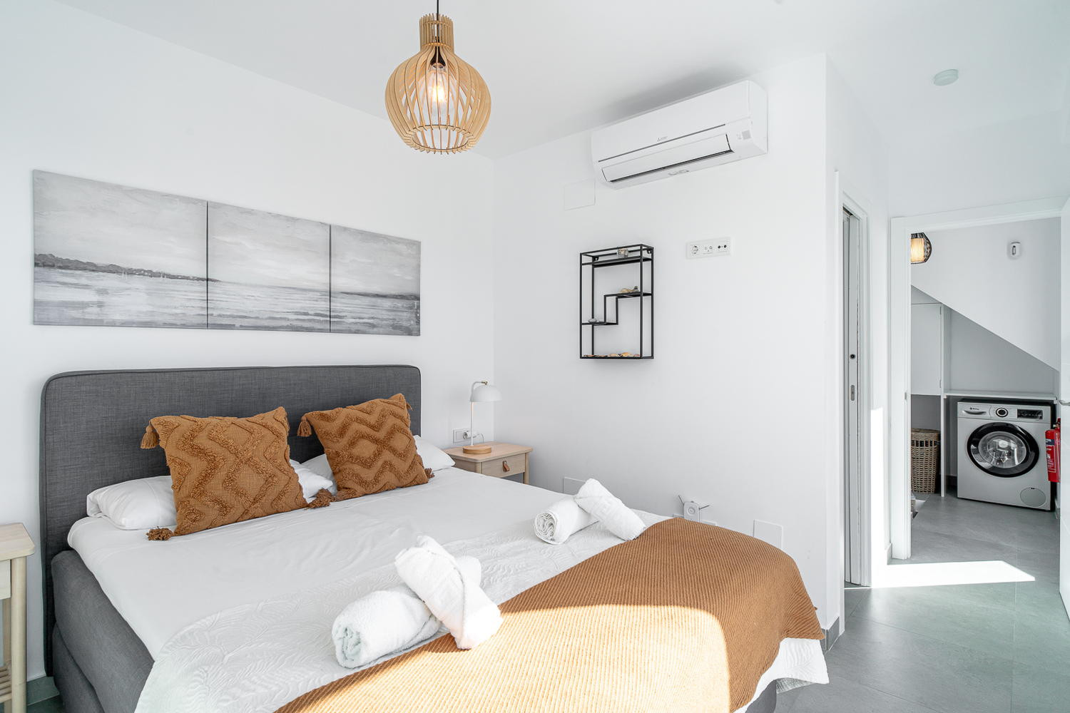 Modern och fräsch inredning i Scandinavisk stil, härligt att vakna i master bedsee more