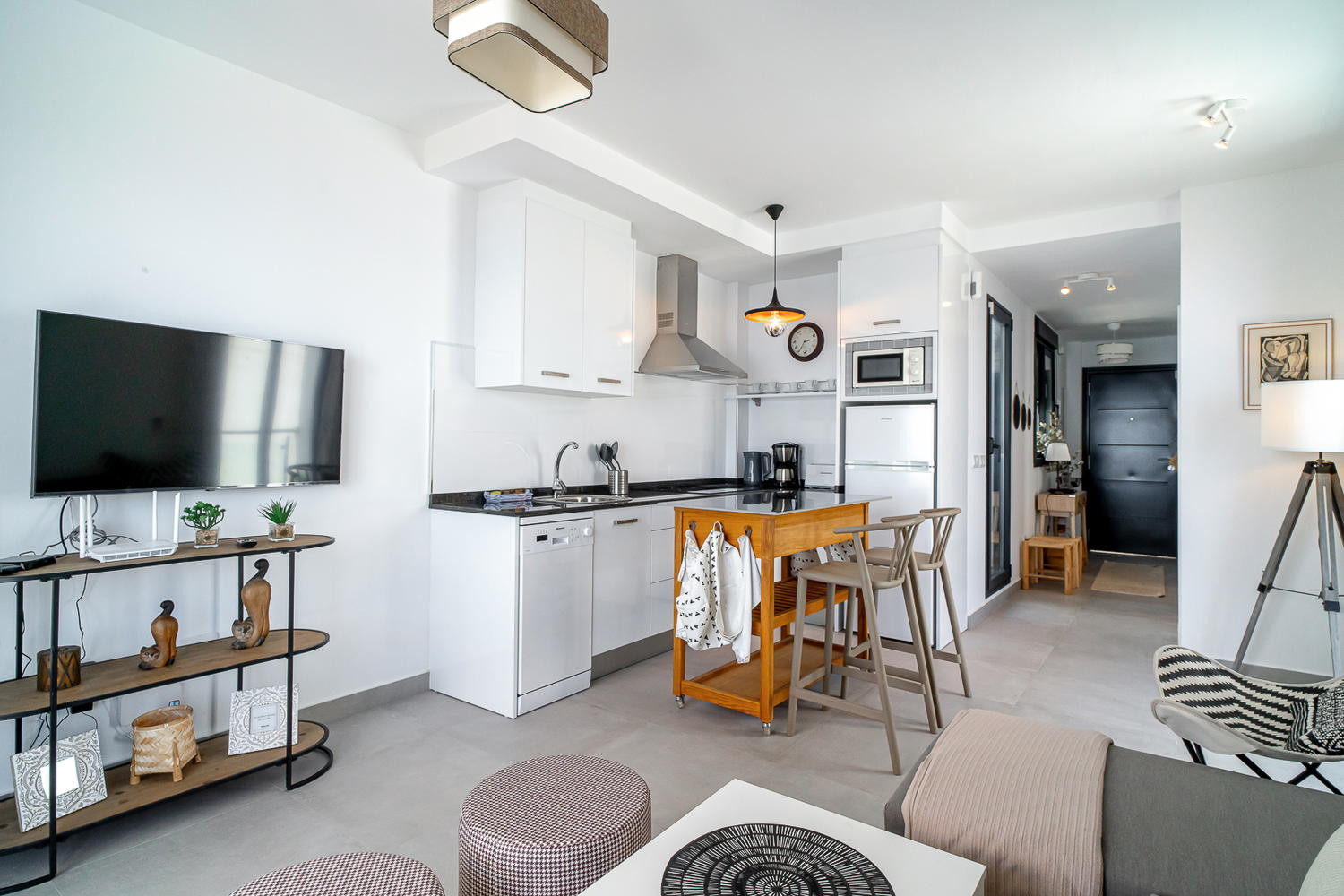 Amenities: Smart TV, full kitchen, washing machine, iron, hairdryer and hotel-quality bedding.
