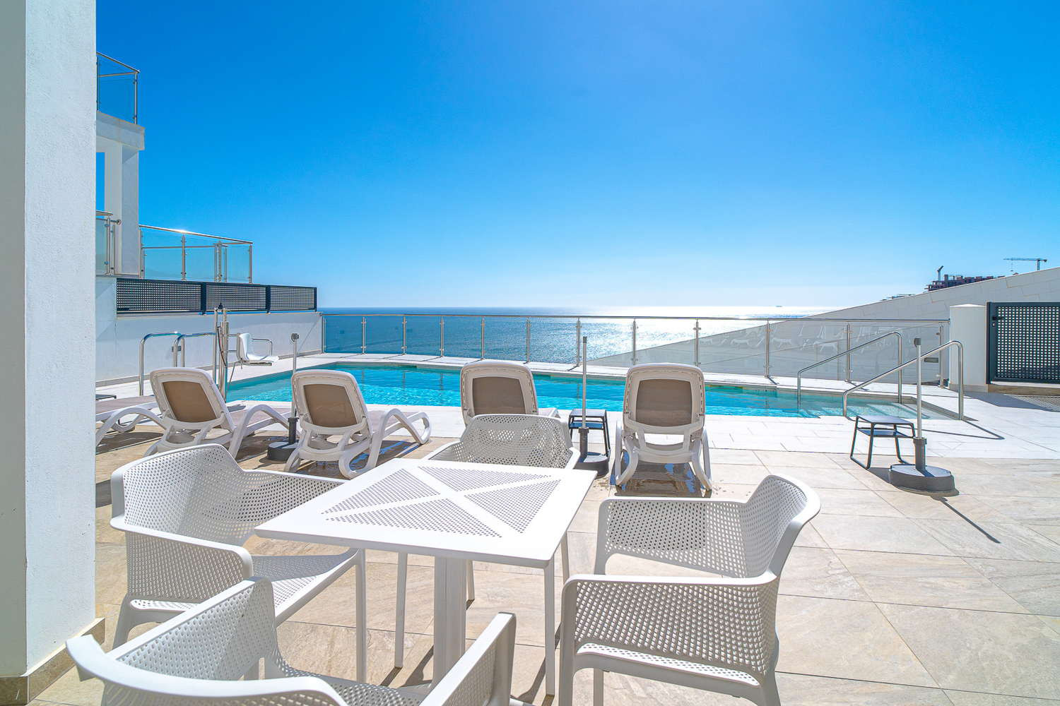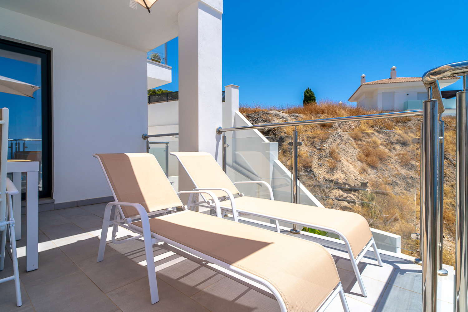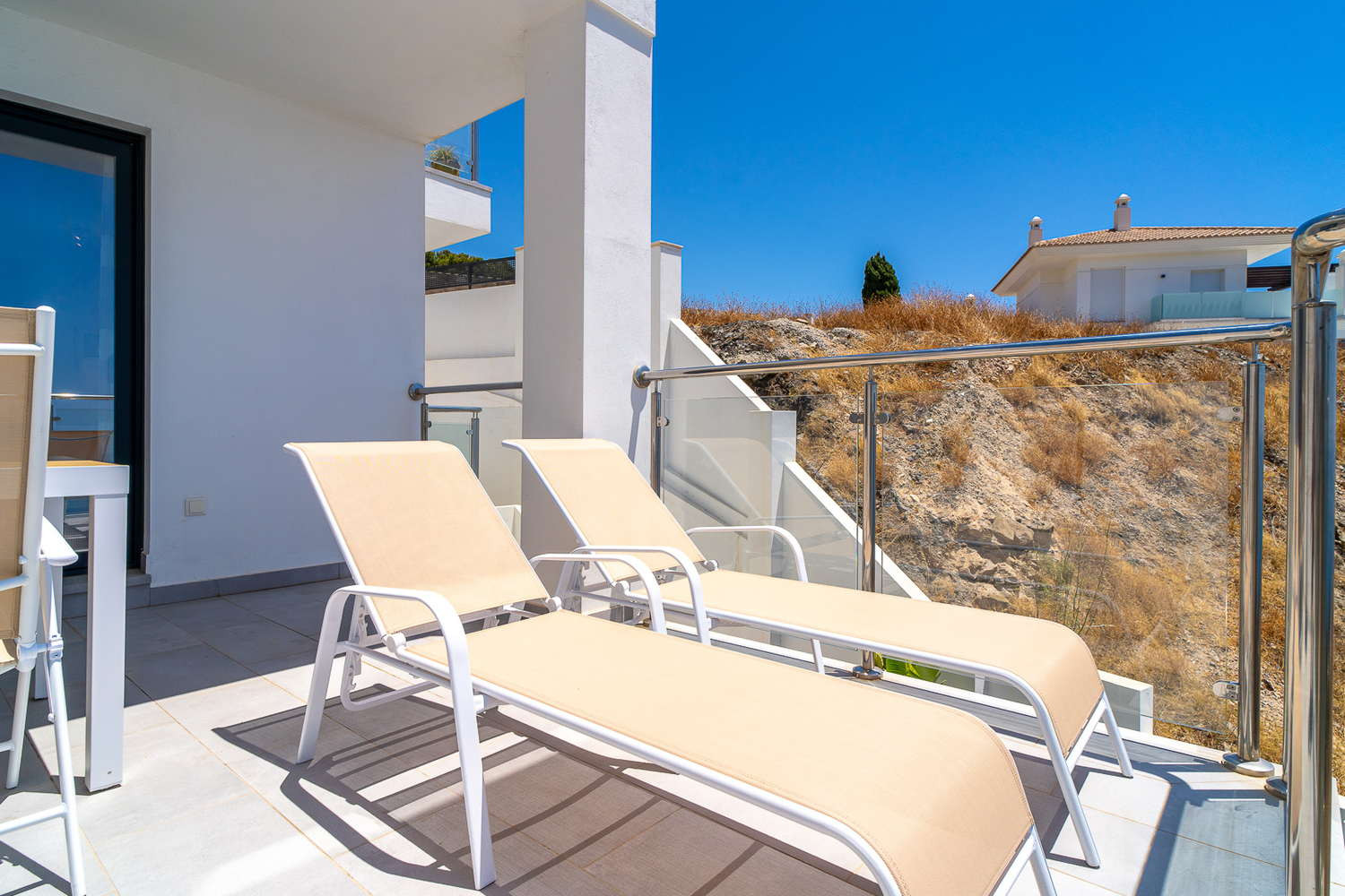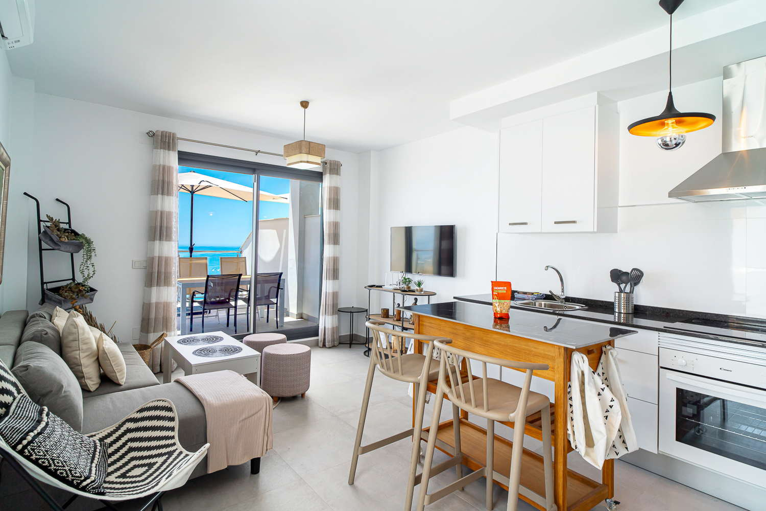 This exclusive flat in the Terrazas de Ladera development is designed for those seeking privacy and unobstructed views. Imagine having a leisurely breakfast on your private south-facing terrace, feeling the sea breeze and contemplating an uninterrupted panoramic view of the Mediterranean. It is the perfect retreat to disconnect from routine and enjoy an environment of maximum relaxation and modern design.The Property: The space has been optimised for comfort for couples. It has a master bedroom with a double bed and a high-quality mattress, guaranteeing a deep sleep. It has a modern bathroom and a fully equipped designer kitchen (with dishwasher and top-of-the-range appliances) that opens onto the living room so you never lose sight of the sea.