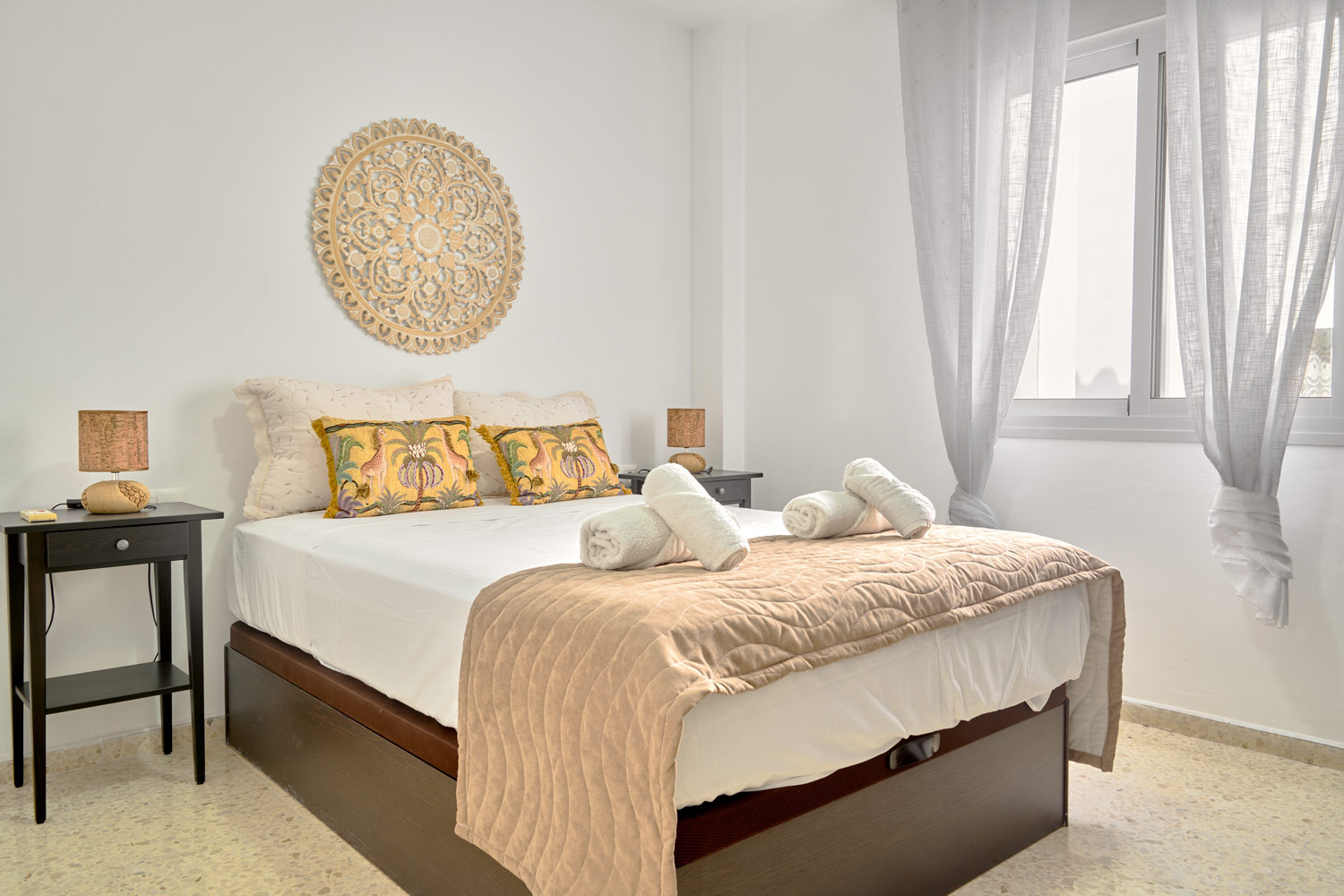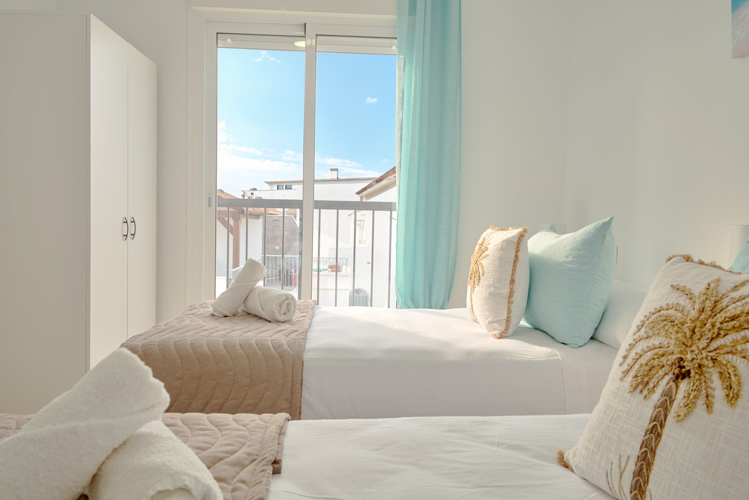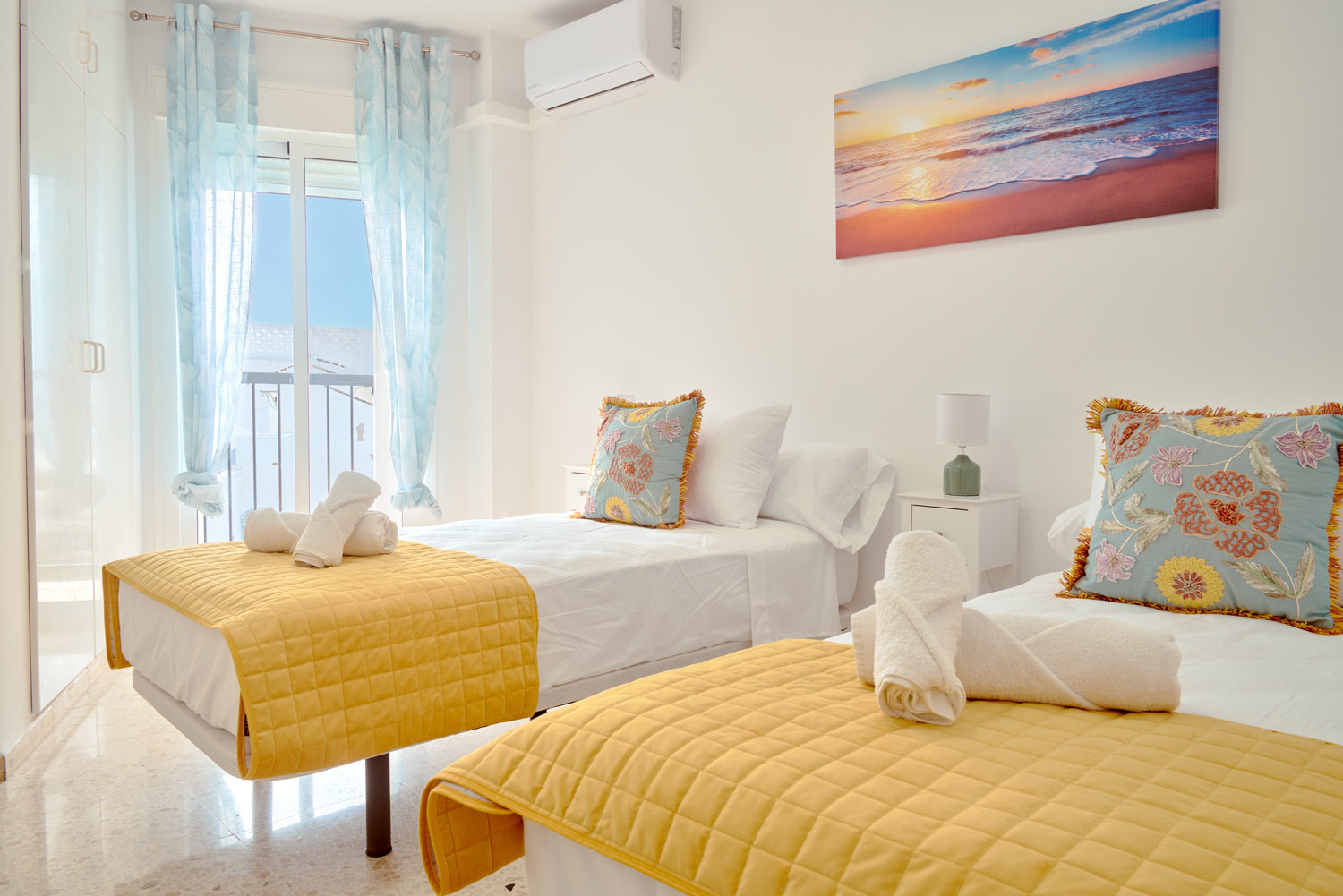 Enjoy the natural light that floods every corner of this refuge in the heart of Nerja, where the south-facing sun shines directly onto the balconies from early in the morning. It is the ideal place for families looking to have breakfast with the gentle bustle of the centre before walking just a few minutes to the beach, or for those who need a bright teleworking space thanks to its built-in desk in the living room.The Property: This spacious three-bedroom flat is designed for family comfort. It has a master bedroom with a double bed and two other bedrooms with two single beds each. It has a full bathroom with a shower and a fully equipped kitchen that connects to a functional interior patio.