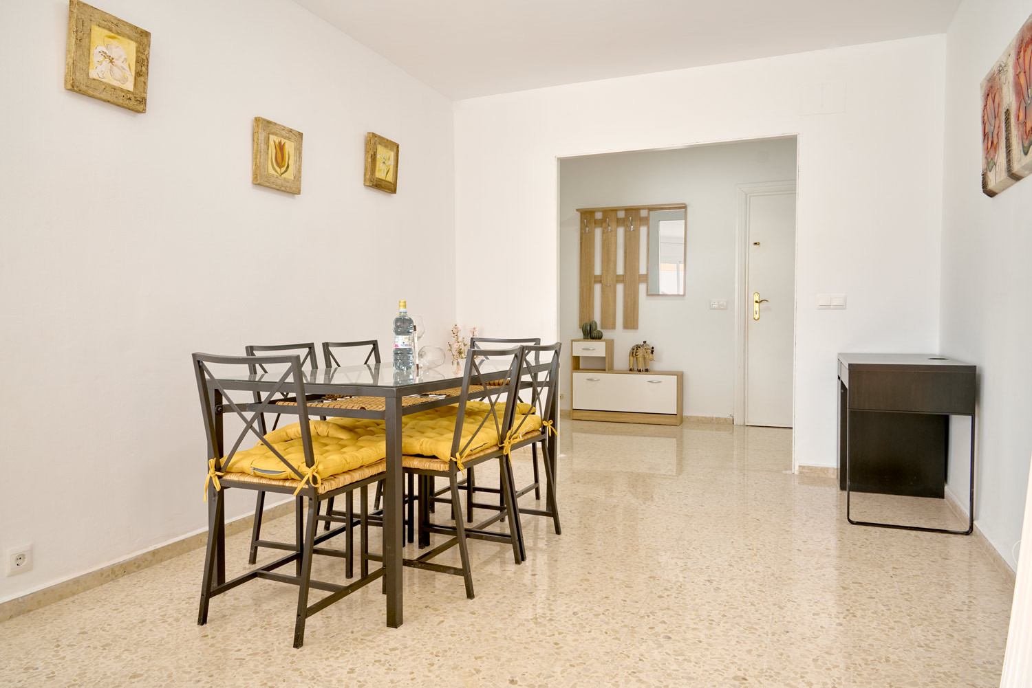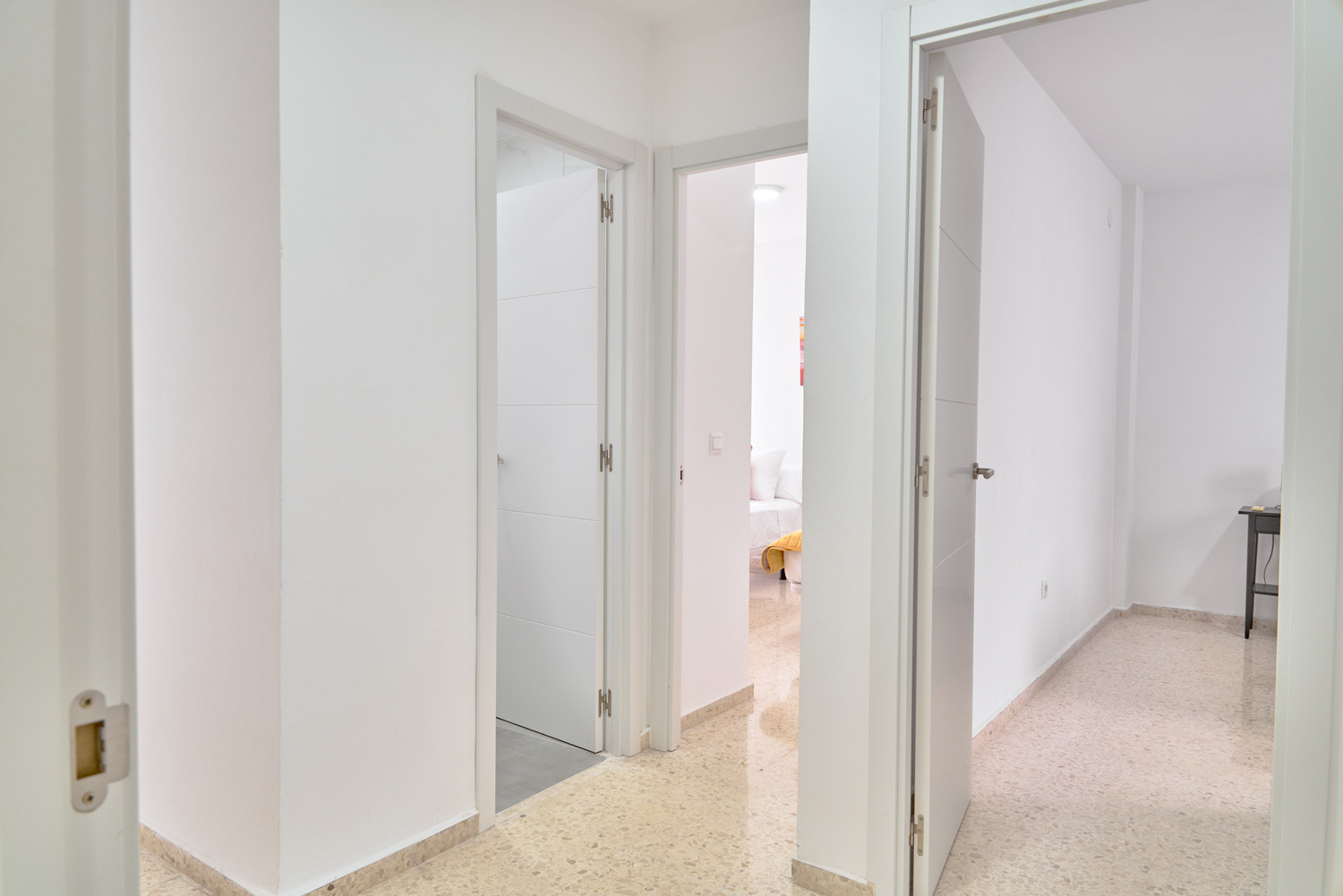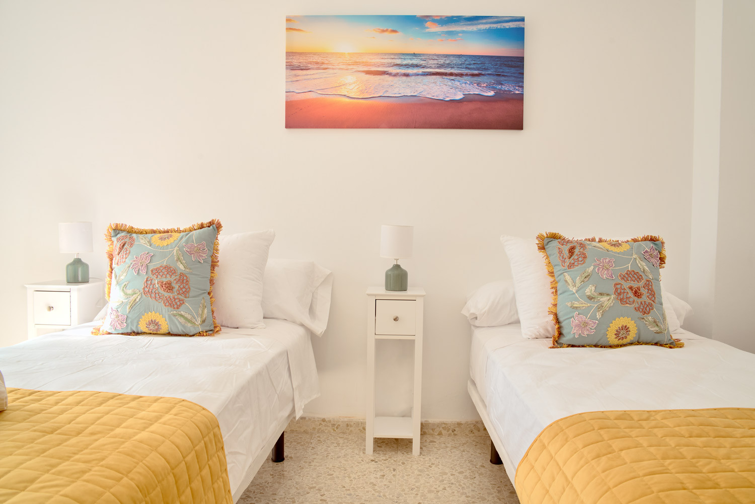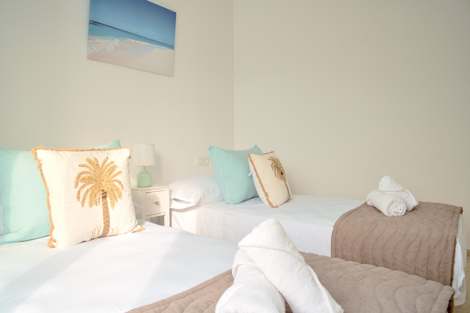 Enjoy the natural light that floods every corner of this refuge in the heart of Nerja, where the south-facing sun shines directly onto the balconies from early in the morning. It is the ideal place for families looking to have breakfast with the gentle bustle of the centre before walking just a few minutes to the beach, or for those who need a bright teleworking space thanks to its built-in desk in the living room.The Property: This spacious three-bedroom flat is designed for family comfort. It has a master bedroom with a double bed and two other bedrooms with two single beds each. It has a full bathroom with a shower and a fully equipped kitchen that connects to a functional interior patio.
