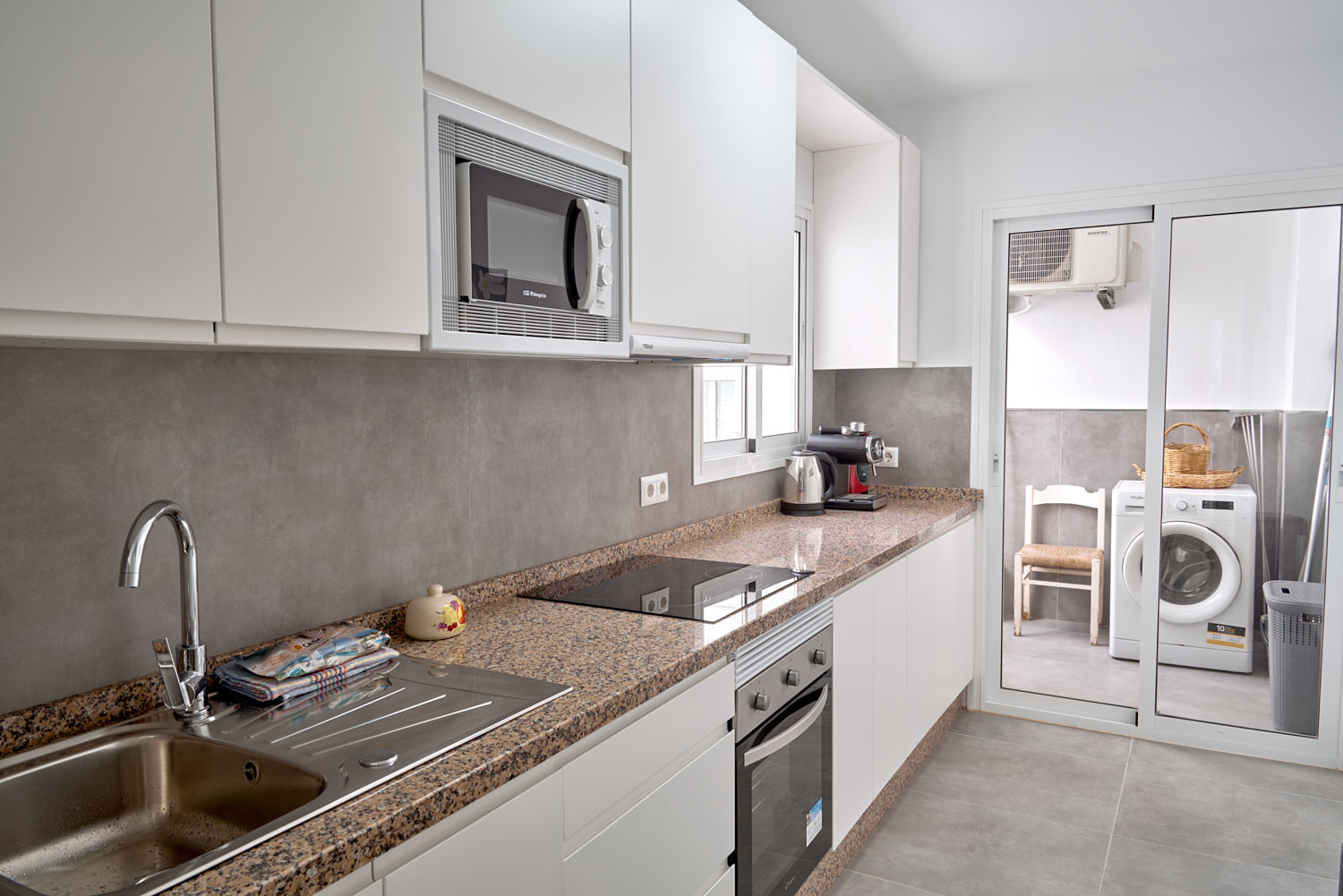 Indoor and outdoor living: The living room is the heart of the home, an open-plan space where the dining table and sofa benefit from the light streaming in through the large window. The transition to the outside is seamless: a small south-facing terrace perfect for reading or having a drink in the sun. In addition, the laundry area in the interior courtyard makes it easy to take care of towels after a day at the beach.