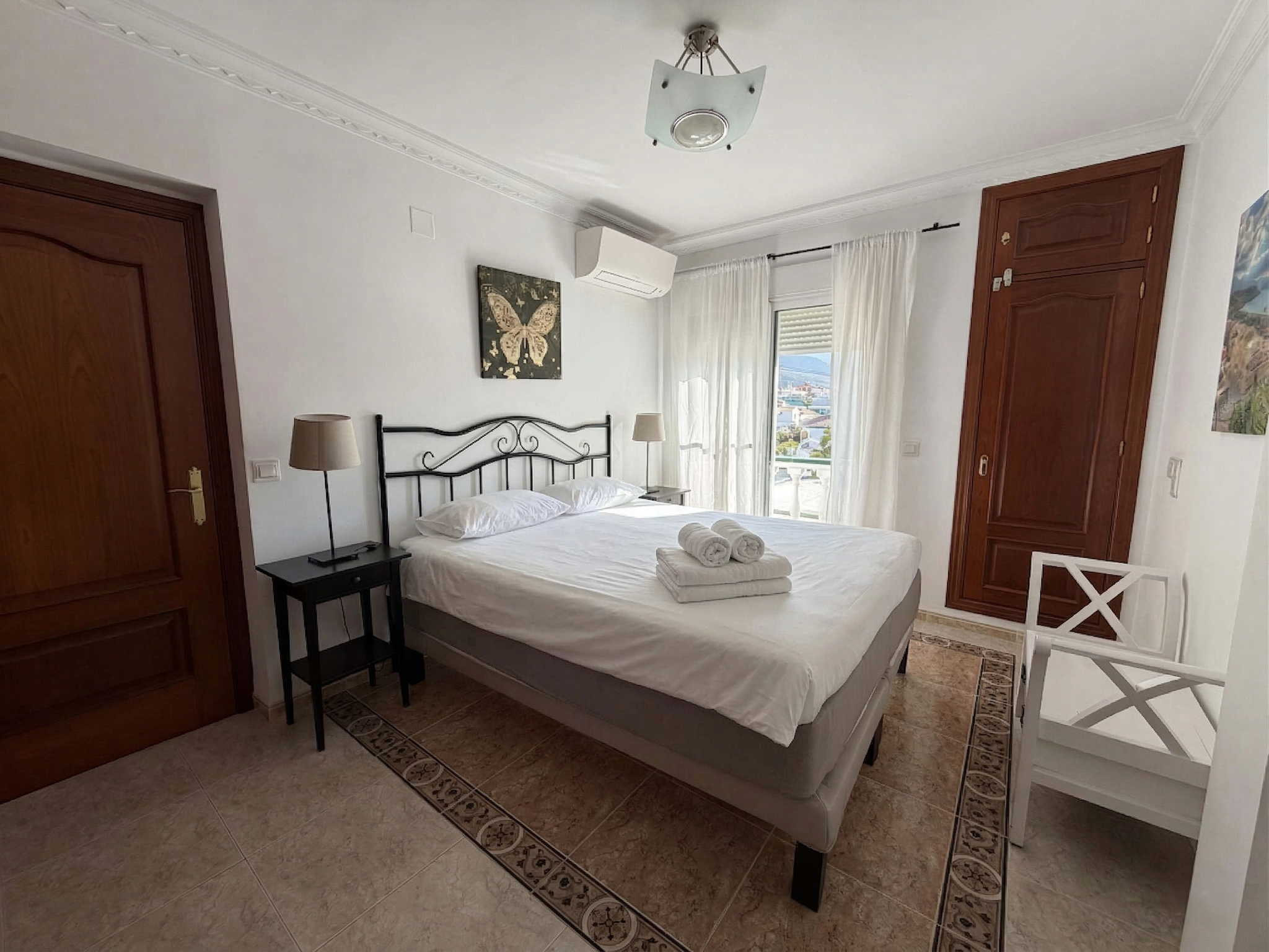 Villa Sandra Top Floor Escape is one of the four luxurious flats that make up Villa Sandra Casasol holiday rental complex, located in the heart of Nerja. This spacious and modern unit is perfect for families, couples, and groups of friends. The Top Floor Escape flat is the second biggest unit in the complex, featuring two bedrooms with two double beds, two large bathrooms, both en-suite, a fully-equipped modern kitchen, a comfortable living and dining area, and a private balcony with beautiful views. The flat also has a private terrace, ideal for enjoying the Mediterranean breeze. The flat is decorated with taste and elegance, with air conditioning, flat-screen TV, and complimentary WiFi.