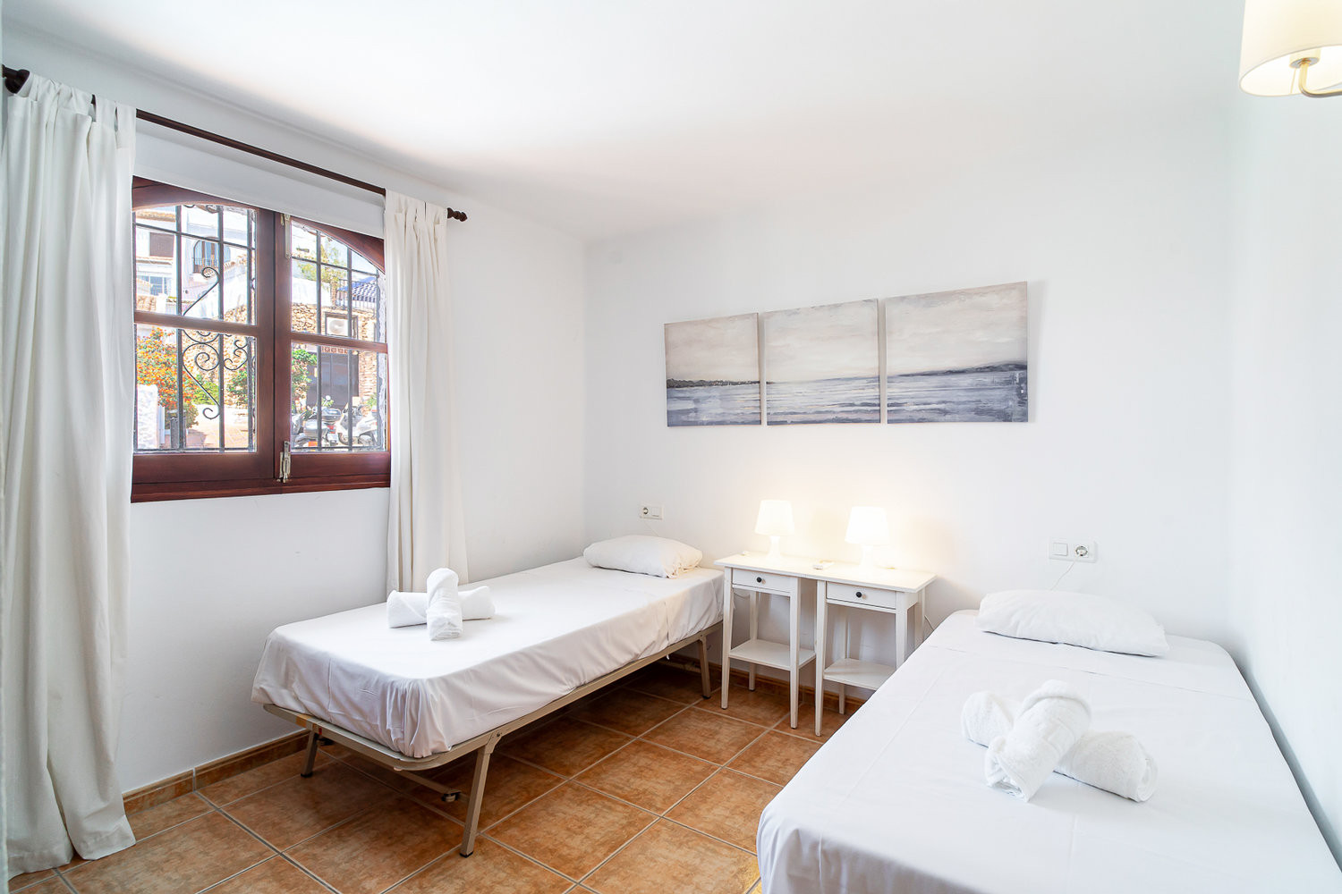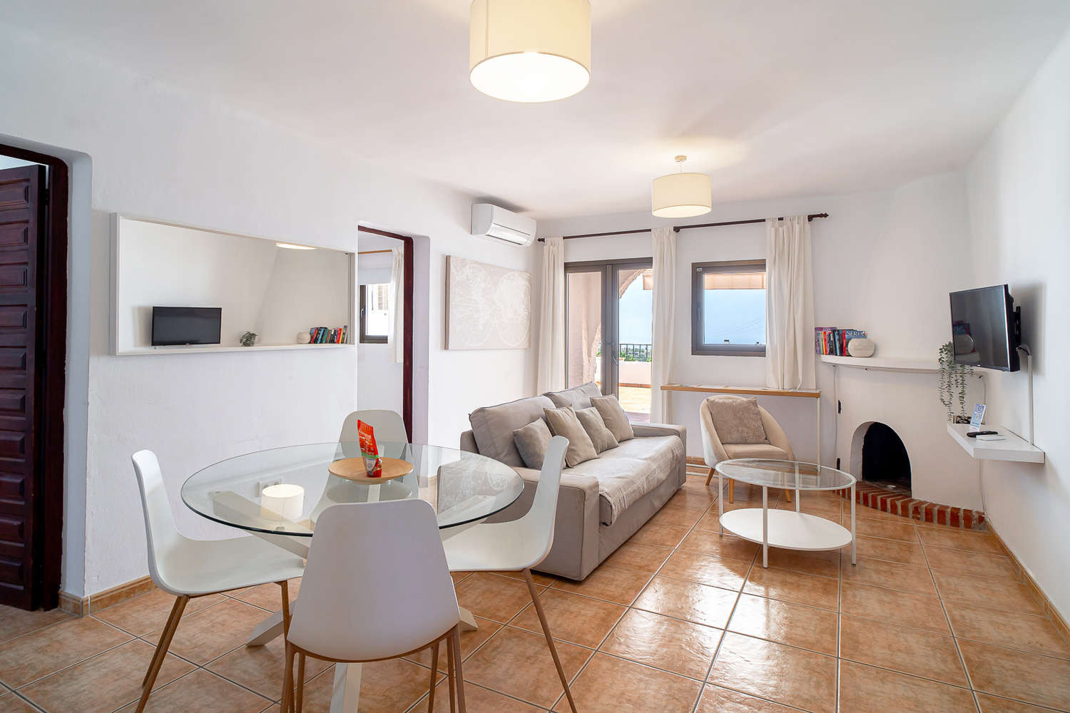 The Property: A bright apartment of approximately 90 m², with capacity for 4 people. It has 2 bedrooms, one with a double bed and the other with two single beds, a bathroom with shower and a comfortable layout with an open-plan kitchen, dining room and living room, decorated in a tasteful and functional style.