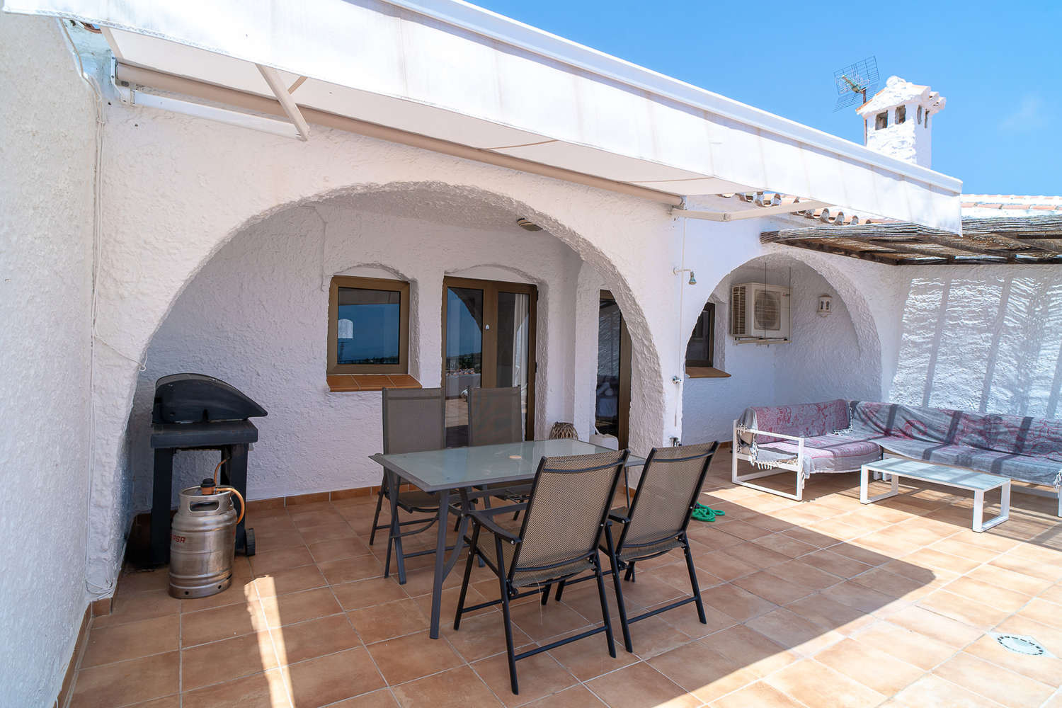 Indoor and outdoor living: The property opens onto a large south-facing terrace of around 30 m², accessible from the lounge and master bedroom. An ideal space to enjoy the sun for most of the day, with an outdoor dining area, sun loungers and gas barbecue, combining sunny and partially covered areas for greater comfort.