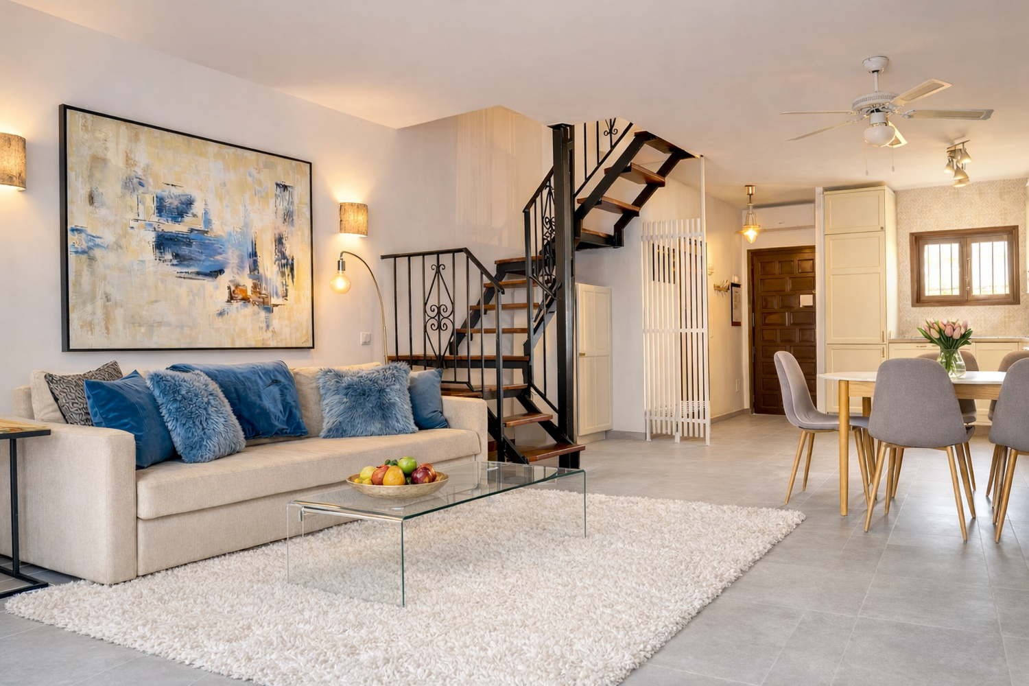 This townhouse in the La Hacienda residential community is one of the most complete options for a holiday rental in Nerja. From its privileged position in the Parador area, you will enjoy Mediterranean views and the convenience of being just 350m from Burriana beach. The property features a carefully chosen decor that respects the traditional Andalusian style, offering peace near the sea without giving up the services of Nerja town center.Layout and capacity for 6 people