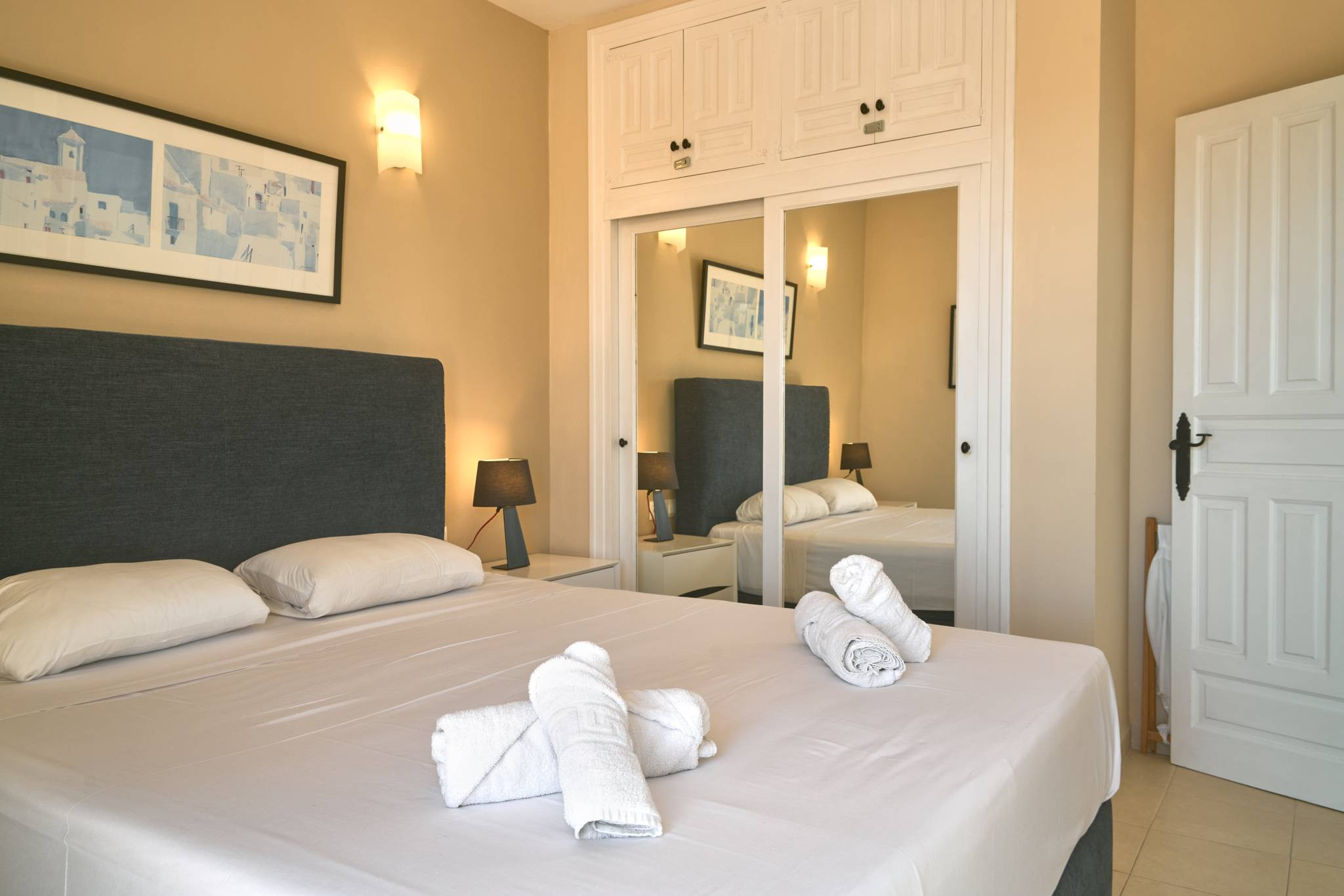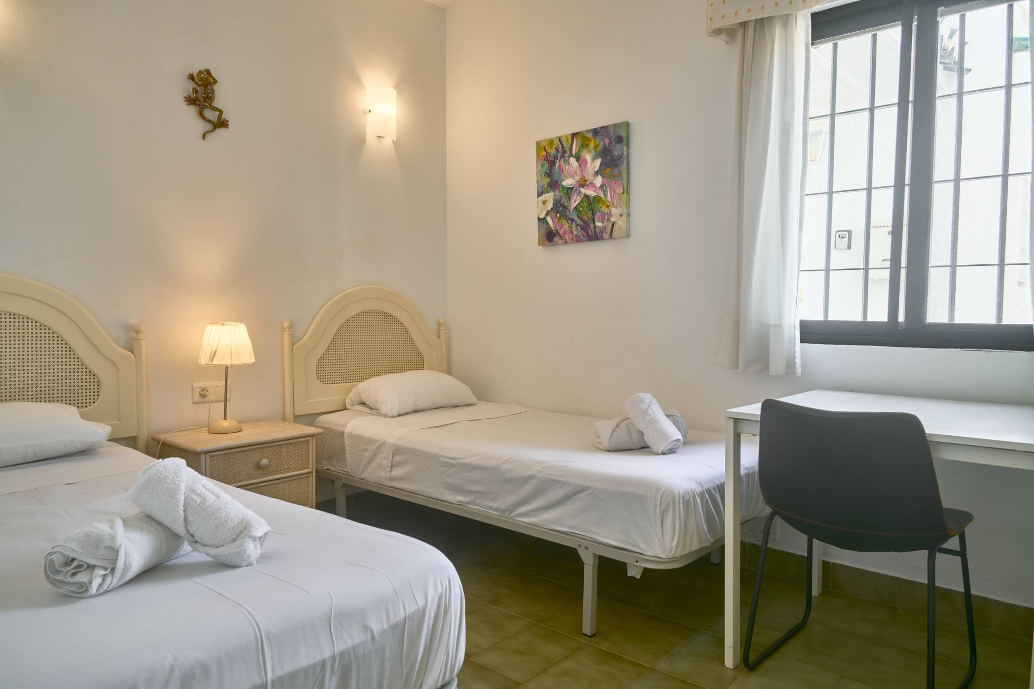 The property is efficiently distributed to offer privacy to its 4 occupants. On the lower floor you will find a spacious living-dining room with direct access to the main terrace and a kitchen with dishwasher, microwave and all the necessary utensils for long stays. This floor has a bedroom with two single beds and a bathroom with shower. Upstairs is the master bedroom with double bed, en-suite bathroom and a separate balcony, allowing each couple or family member to have their own space to relax.Terraces on various levels and private solarium