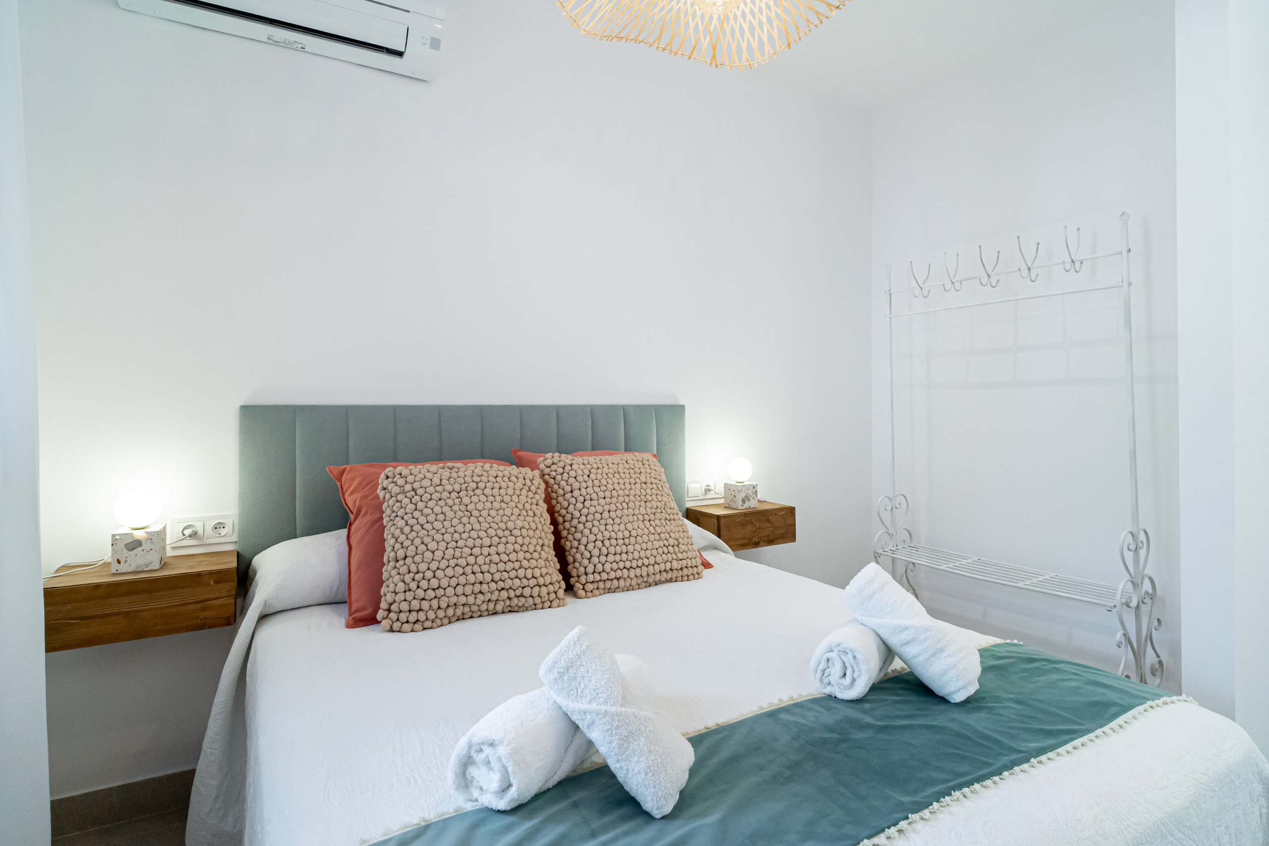 Det öppna sovrummet är genomtänkt utformat för maximal komfort och har en dubbelsäng med en högkvalitativ madrass som garanterar en god natts sömn. En öppen garderob ger enkel tillgång till dina tillhörigheter, medan mörkläggningsgardiner och luftkonditionering garanterar en perfekt miljö för avkoppling året om.