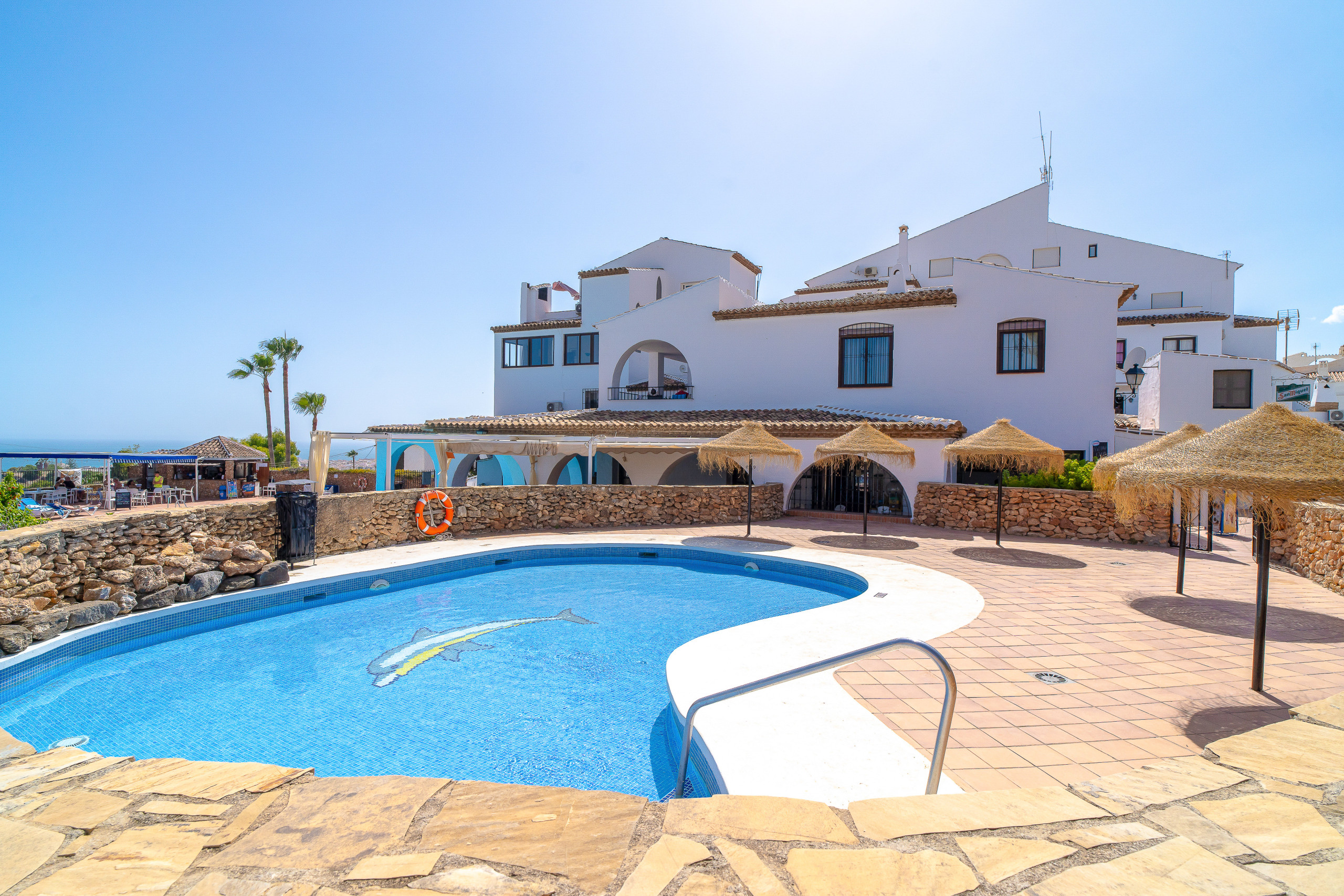 Capistrano Village erbjuder två extraordinärt trevliga stora poolområden med poolbar och restaurang. Detta charmiga område har vitkalkade hus i andalusisk stil, omsorgsfullt skötta blomsterträdgårdar och en fantastisk utsikt över Medelhavet och de omgivande bergen. Urbaniseringen är noggrant underhållen, vilket garanterar renlighet, regelbundet underhåll och vackert skötta trädgårdar, vilket skapar en välkomnande miljö för både boende och besökare.