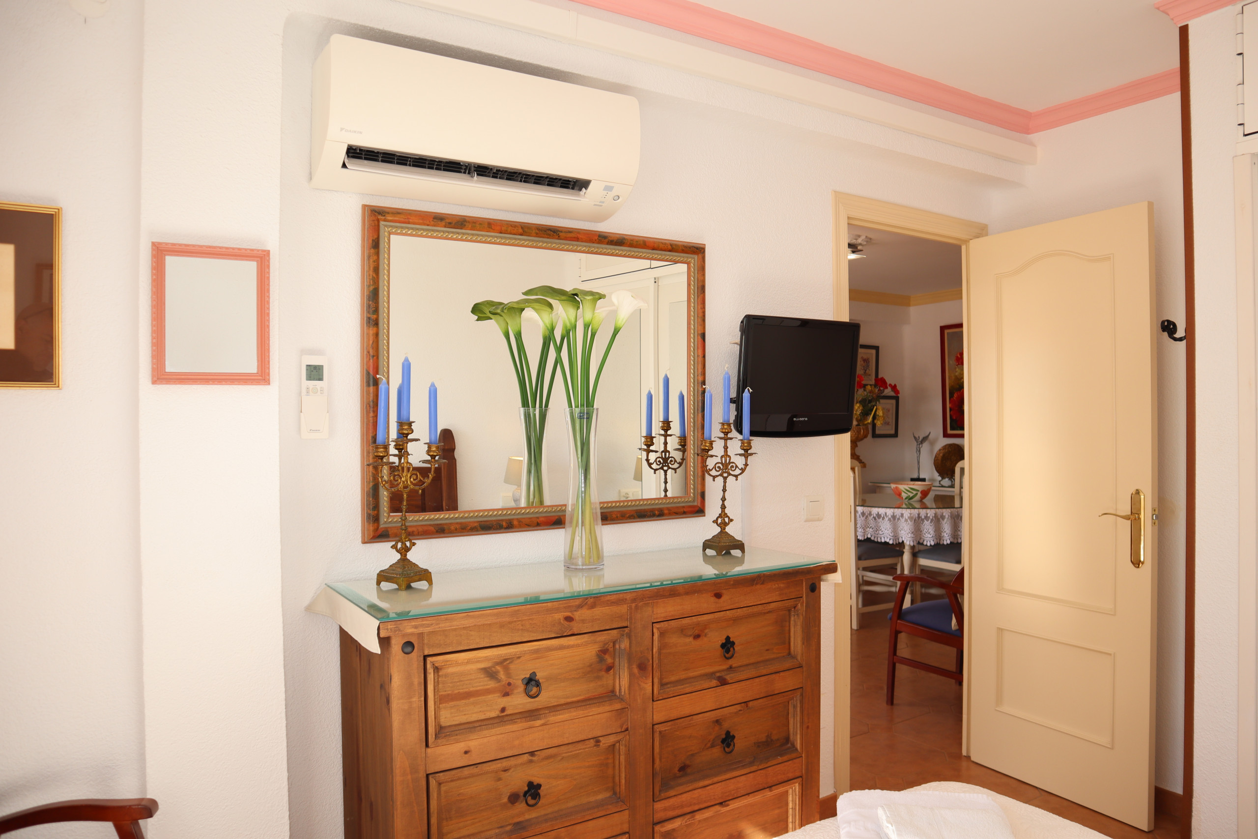 Lovely apartment in a great location. Very spacious with lovely balcony looking over sea views. Supplied us with a travel cot and high chair at no extra cost.