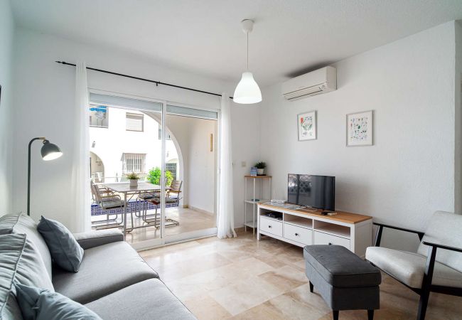 Underbar lÀgenhet i Nerja med tvÄ sovrum och tvÄ badrum för fyra personer i urbaniseringen Las Fuentes med ett oslagbart lÀge, havsutsikt och gemensam pool.
