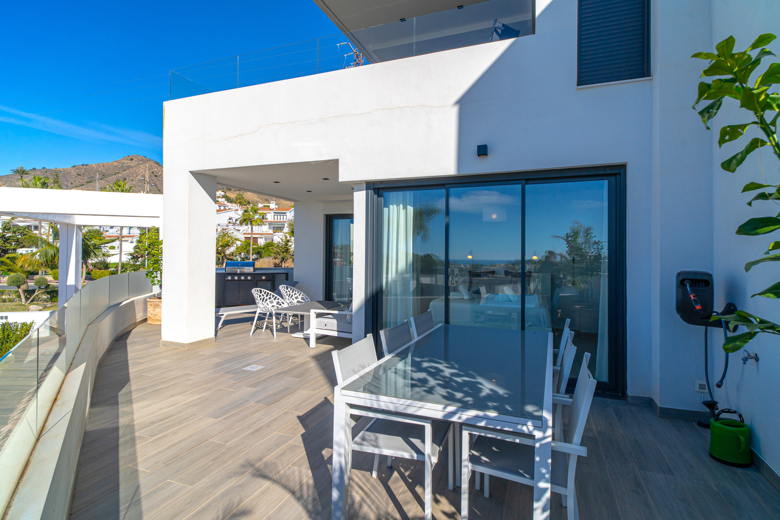 Den lokala busshållplatsen ligger bara 5 minuters promenad bort, med timmestrafik till Nerjas centrum eller Burriana-stranden, vilket ger bekväma transportalternativ. Taxibilarna i Nerja är effektiva och ett pålitligt alternativ om man vill komma hem sent. Priset ligger vanligtvis mellan 8 och 12 euro för en enkel resa.