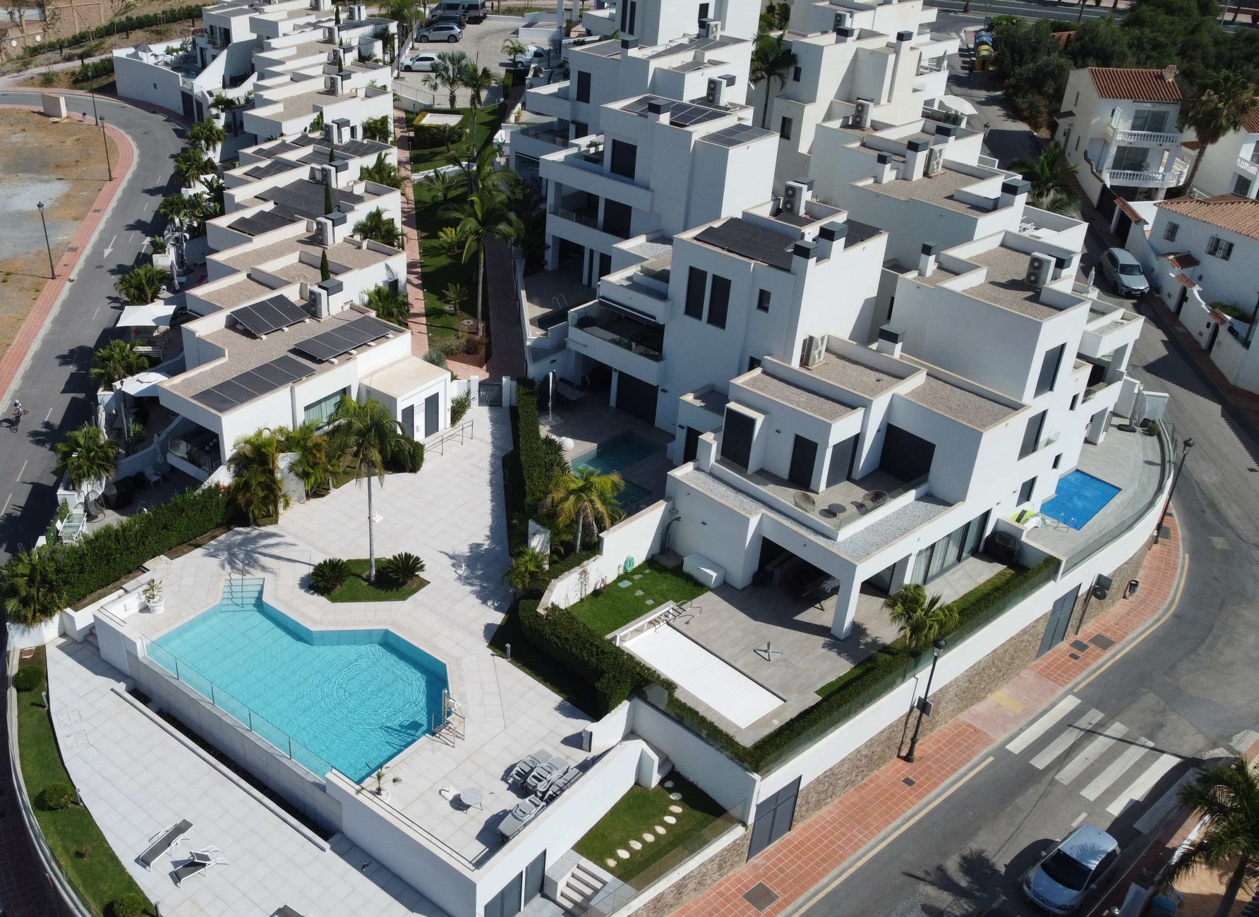 Royal Palm är ett nybyggt bostadsområde som har en modern design med rena linjer, minimalistiska proportioner, öppna planlösningar och stora glaspartier som ger ett rikligt naturligt ljusinsläpp. Komplexet är designat av den hyllade arkitekten Bernardo Pozuelo och ligger mitt i frodiga, livfulla trädgårdar prydda med exotiska palmer och prydnadsfontäner, vilket skapar en lugn och fridfull miljö. Vid entrén finns en gemensam pool som är en perfekt plats för avkoppling och umgänge.