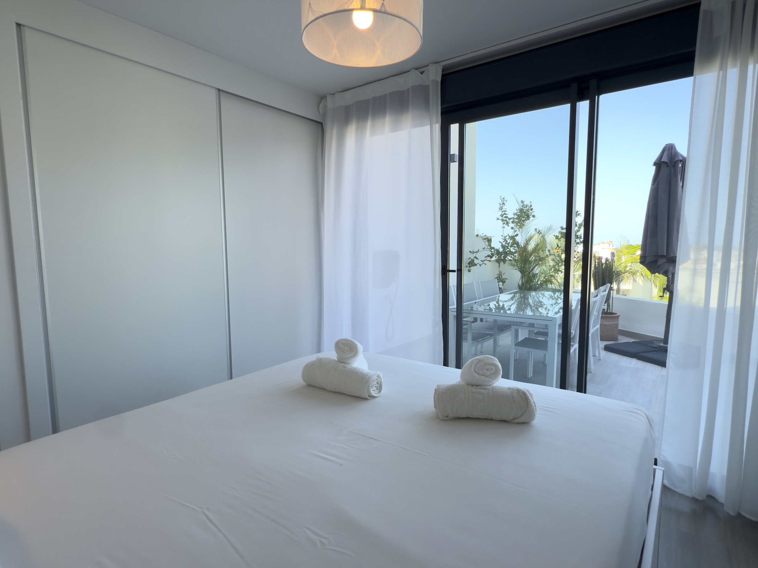 Royal Palm Luxe är en lyxig och elegant lägenhet i sydvästläge, inredd med moderna möbler och med fokus på komfort och avkoppling. Här finns en stor terrass med matplats, lounge och ett utomhuskök utrustat med grill, perfekt för måltider och sammankomster utomhus. Lägenheten har tre vackert inredda sovrum, inklusive ett master bedroom med eget badrum och direkt tillgång till terrassen, samt ytterligare två sovrum med dubbelsängar och högkvalitativa madrasser för ultimat komfort.