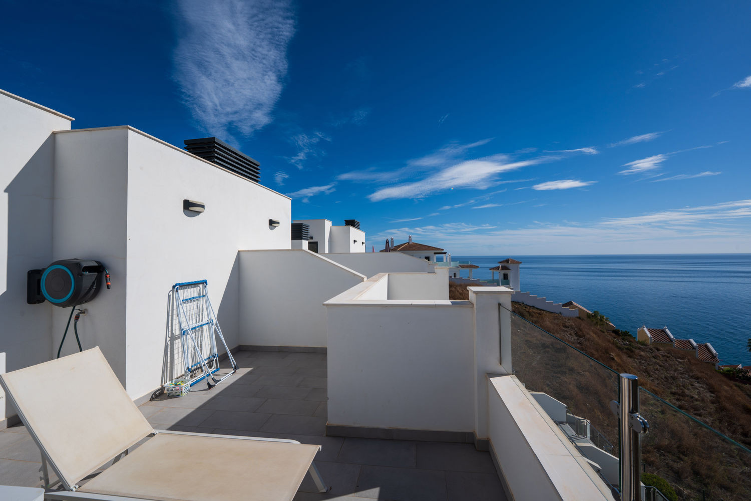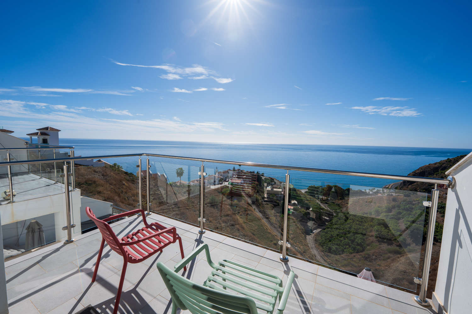 Men den verkliga pÀrlan i denna fastighet Àr dess tre hisnande terrasser med fantastisk havsutsikt och oÀndligt solsken - sÀrskilt den magnifika med panoramautsikt.